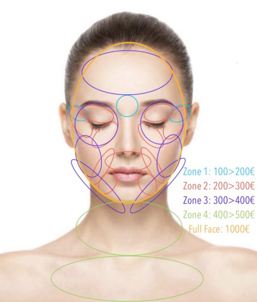 - Contour des yeux (paupières supérieurs, cernes et pattes d’oie) 400 € / 200€
